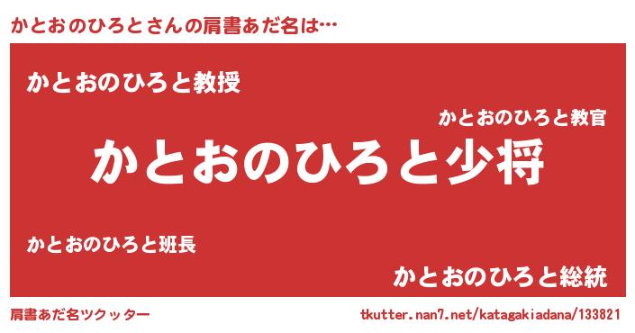 | ヘコむあだ名 | 『かとっぺ』『かとおのひろと(笑)』 |