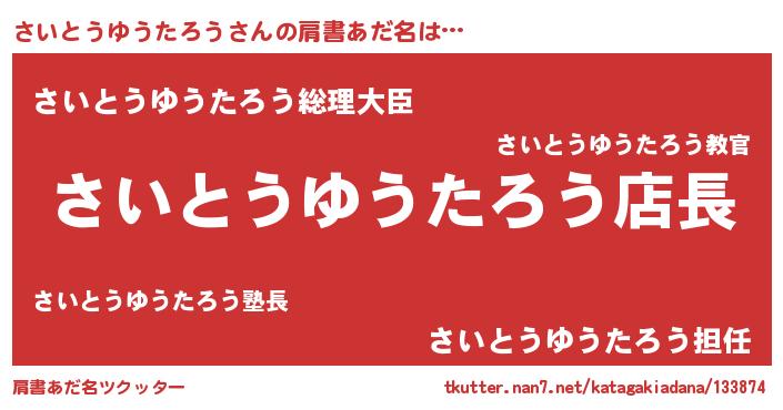 | 男性向けラノベタイトル風あだ名 | 『サイトウユウタロウアートオンライン』 |