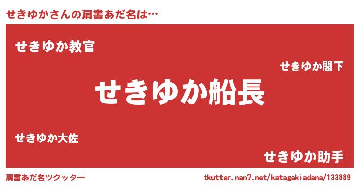 | 意味不明あだ名 | 『住所不定無職せきゆか(11歳)』 |