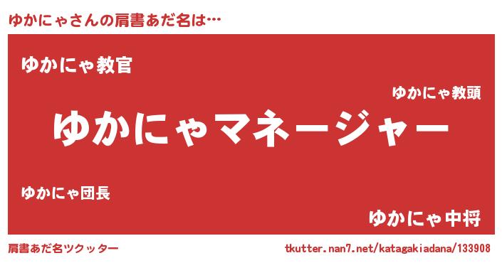 | 意味不明あだ名 | 『住所不定無職ゆかにゃ(5歳)』 |
