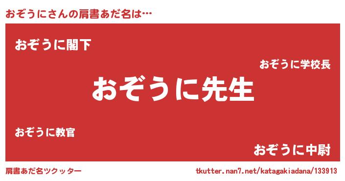 | 意味不明あだ名 | 『永久保存おぞうに』『自称おぞうに』 |