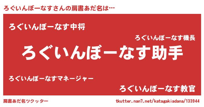 | 欧米人風あだ名 | 『ダニエルろぐいんぼーなす』 |