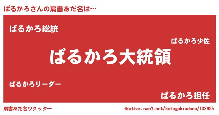 | 意味不明あだ名 | 『ばるかろフォーエバー』『自称ばるかろ』 |