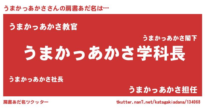 | ヘコむあだ名 | 『うまかっあかさ(苦笑)』『うまもー』 |