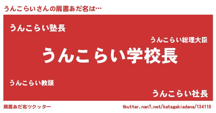 | 男性向けラノベタイトル風あだ名 | 『おまえをオタクにしてやるから、俺をうんこらいにしてくれ! 』 |
