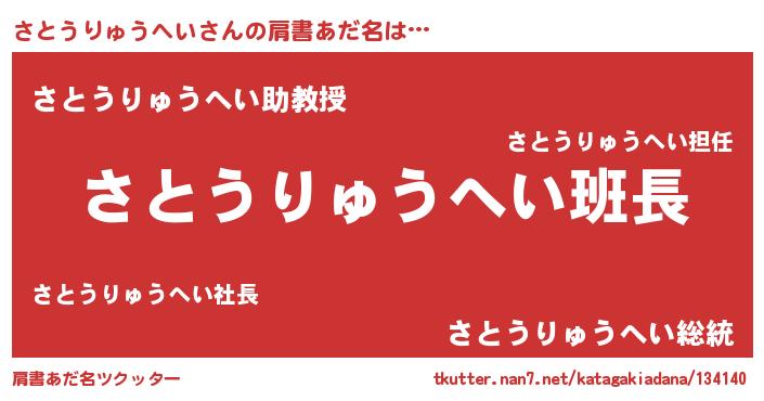 | 男性向けラノベタイトル風あだ名 | 『さとうりゅうへいの嫁は女の子じゃないと思った?』 |