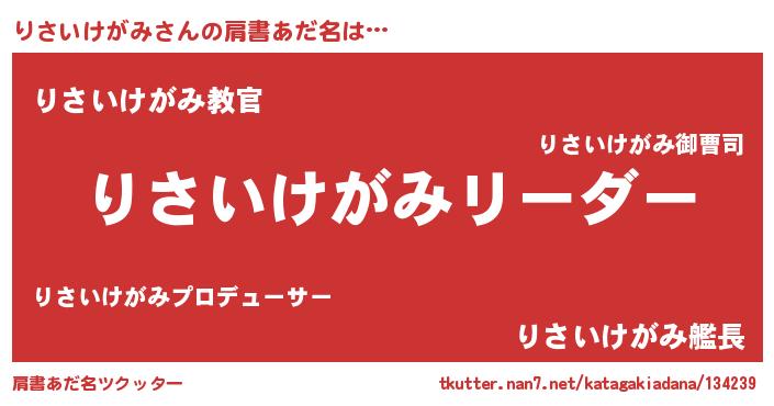 | 男性向けラノベタイトル風あだ名 | 『りさいけがみの嫁は女の子じゃないと思った?』 |