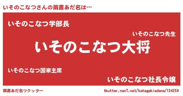 | 男性向けラノベタイトル風あだ名 | 『いそのこなつ~年齢イコール彼女いない歴の魔法使い~』 |