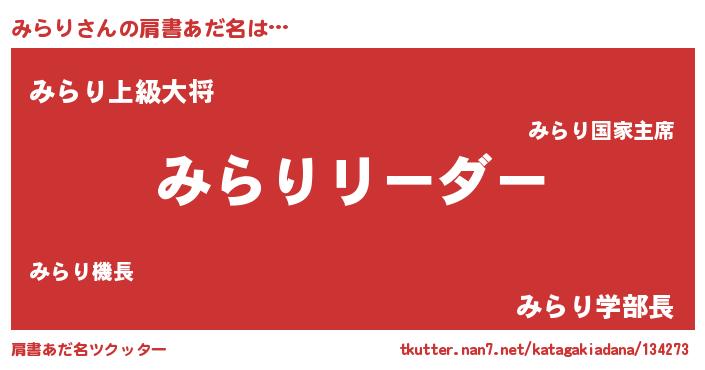 | 意味不明あだ名 | 『とにかく怪しいみらり』『自称みらり』 |