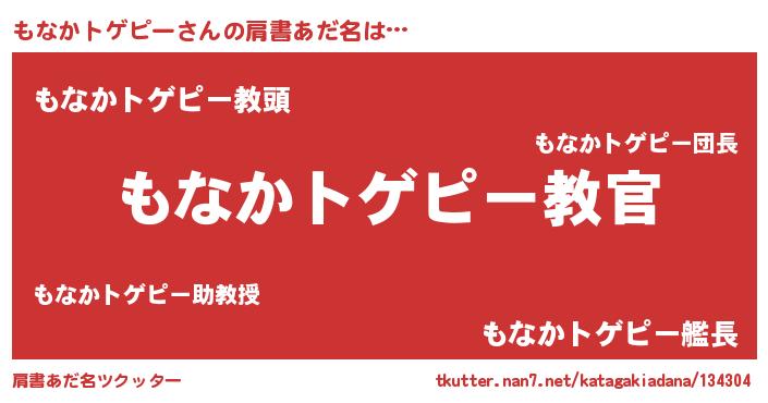| 男性向けラノベタイトル風あだ名 | 『この素晴らしい世界にもなかトゲピーを!』 |