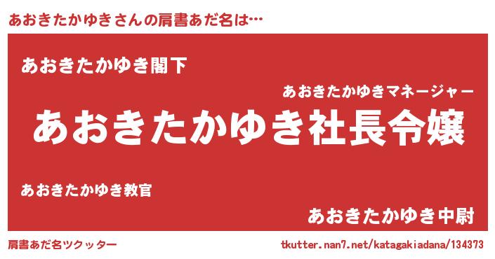 | 男性向けラノベタイトル風あだ名 | 『アオキタカユキアートオンライン』 |