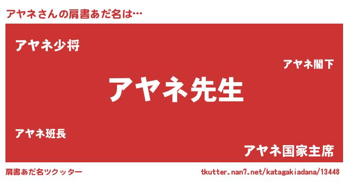 | ヘコむあだ名 | 『アヤネ(小並感)』『牛乳』 |