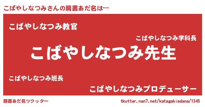 | 可愛いあだ名 | 『こばやしなつみママ』『ぽよこば』 |