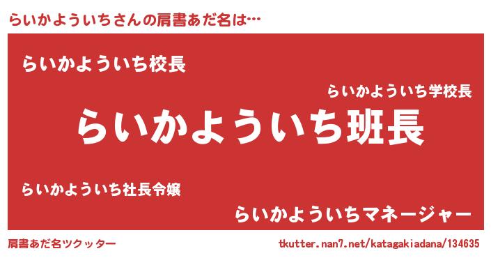 | 意味不明あだ名 | 『とにかく怪しいらいかよういち』 |