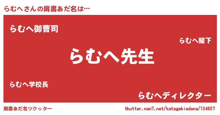 | ヘコむあだ名 | 『らむへ(小並感)』『らむっふぃ~』 |