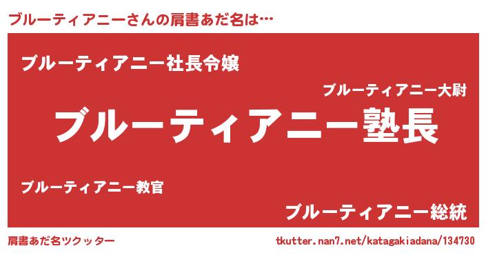| 男性向けラノベタイトル風あだ名 | 『ブルーティアニーの嫁は女の子じゃないと思った?』 |