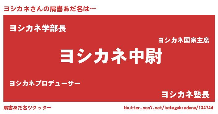 | 男性向けラノベタイトル風あだ名 | 『ヨシカネ~年齢イコール彼女いない歴の魔法使い~』 |