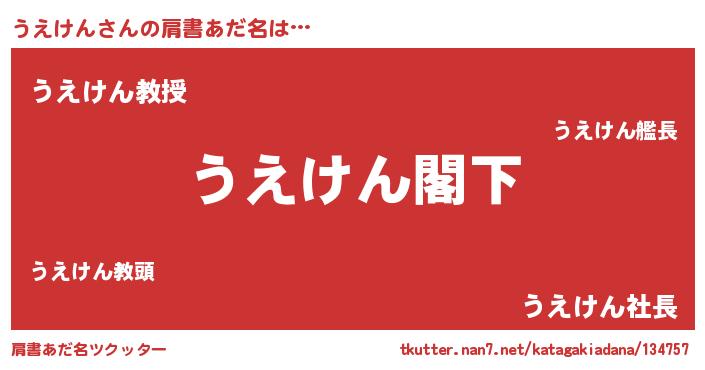 | ヘコむあだ名 | 『うえふぇ~』『うえけん(小並感)』 |