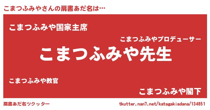 | ヒーロー風カッコイイあだ名 | 『ネオコマツフミヤ』『仮面コマダー』 |