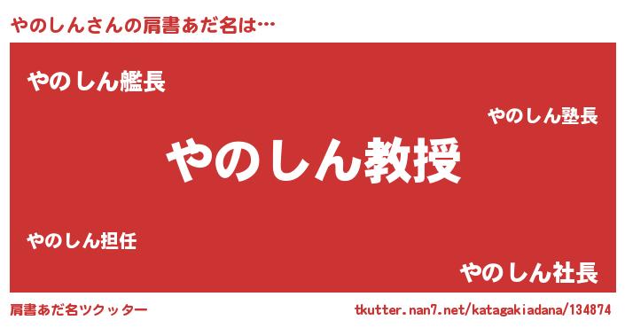 | 女子向けラノベタイトル風あだ名 | 『やのしん恋絵巻』『やのしんの契約王妃』 |