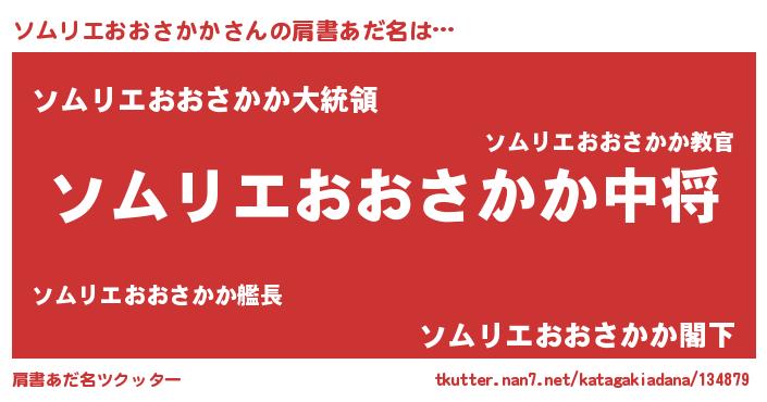 | 男性向けラノベタイトル風あだ名 | 『ソムリエおおさかか~年齢イコール彼女いない歴の魔法使い~』 |