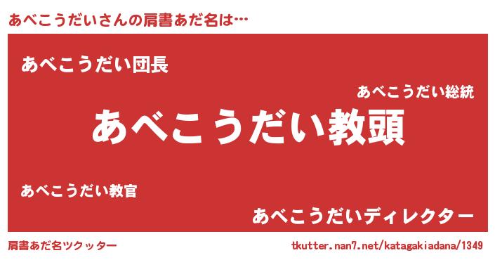 | 男性向けラノベタイトル風あだ名 | 『あべこうだいという概念が存在しない退屈な世界 』 |