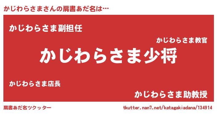 | 男性向けラノベタイトル風あだ名 | 『かじわらさま~年齢イコール彼女いない歴の魔法使い~』 |