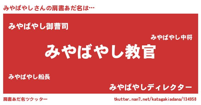 | 男性向けラノベタイトル風あだ名 | 『この素晴らしい世界にみやばやしを!』 |