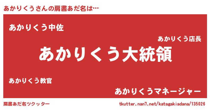 | ヘコむあだ名 | 『なまこ酢』『あかにー』『あかっ子』 |