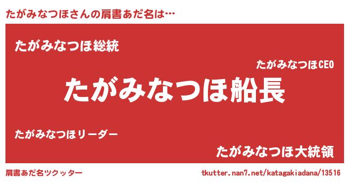 | 意味不明あだ名 | 『自称たがみなつほ』 |