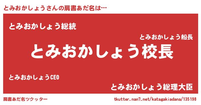 | 男性向けラノベタイトル風あだ名 | 『とみおかしょうという概念が存在しない退屈な世界 』 |