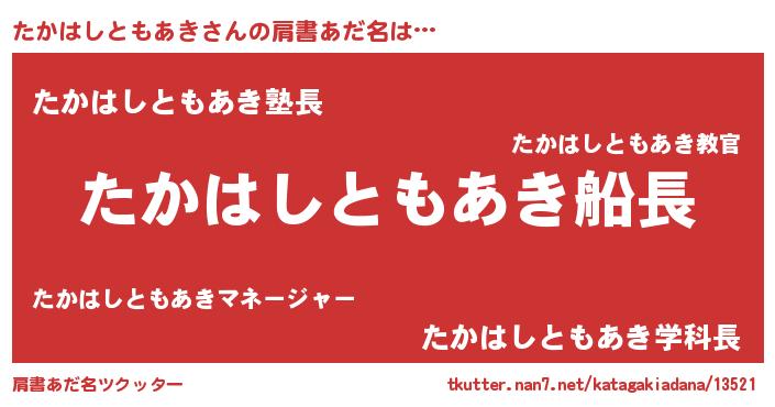 | 欧米人風あだ名 | 『たかはしともあき・ステッグマイヤー』 |