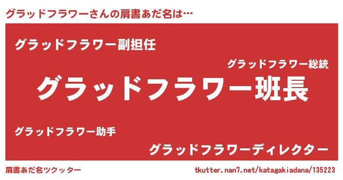 | ヘコむあだ名 | 『グラ太郎』『グラッドフラワー(震え声)』 |