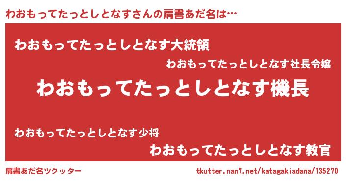 | 欧米人風あだ名 | 『わおもってたっとしとなす・ステッグマイヤー』 |
