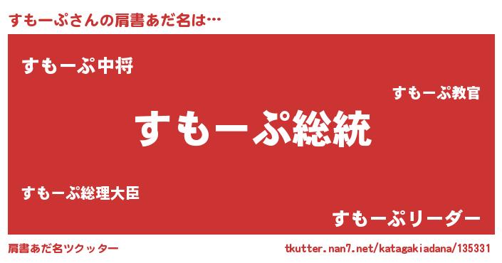 | 意味不明あだ名 | 『自称すもーぷ』『ヨモギ科すもーぷ属』 |
