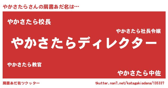 | ヘコむあだ名 | 『やかさたら(笑)』『やかにゅー』 |