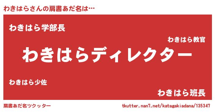 | ヒーロー風カッコイイあだ名 | 『愛の使者わきはら』『幻影騎士ワキ』 |