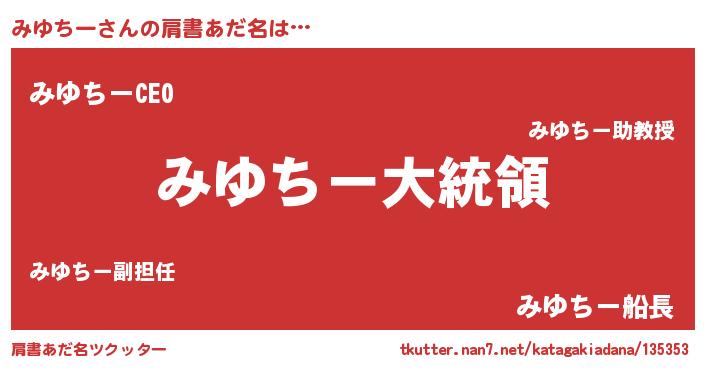 | ポケモン風あだ名 | 『ミユチダネ』『ミユチュウ』 |