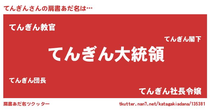 | ヒーロー風カッコイイあだ名 | 『ウルトラてんぎんマン』『仮面テンダー』 |