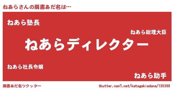 | 男性向けラノベタイトル風あだ名 | 『はたらくねあらさま!』 |