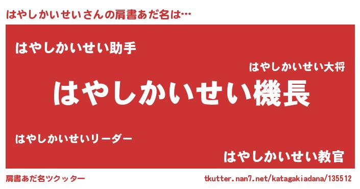 | 欧米人風あだ名 | 『はやしかいせい・ステッグマイヤー』 |