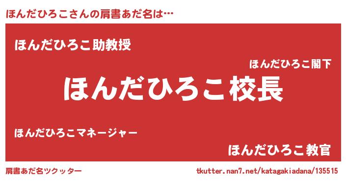 | ヘコむあだ名 | 『ほんだひろこ(笑)』『牛乳』 |