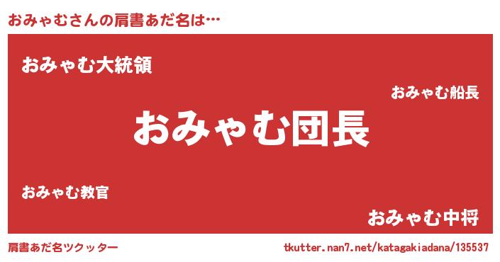 | 意味不明あだ名 | 『とにかく怪しいおみゃむ』 |