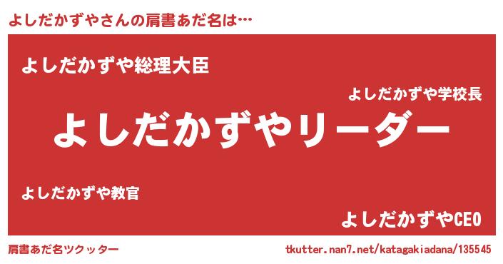 | 男性向けラノベタイトル風あだ名 | 『ダンジョンによしだかずやを求めるのは間違っているだろうか』 |
