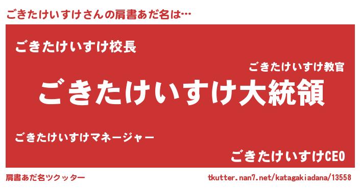 | 意味不明あだ名 | 『ごきたけいすけフォーエバー』 |