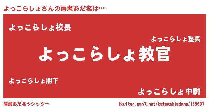 | 男性向けラノベタイトル風あだ名 | 『この素晴らしい世界によっこらしょを!』 |