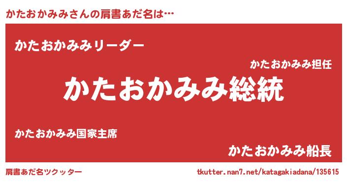 | ヒーロー風カッコイイあだ名 | 『最強戦士カタオカミミ』『魔戒騎士カタ』 |