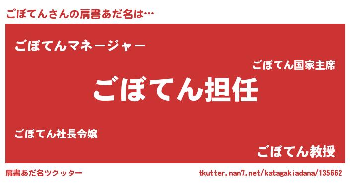 | ヒーロー風カッコイイあだ名 | 『ネオゴボテン』『愛の使者ごぼてん』 |