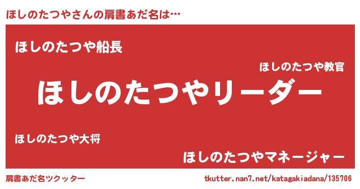 | 男性向けラノベタイトル風あだ名 | 『ほしのたつやの嫁は女の子じゃないと思った?』 |