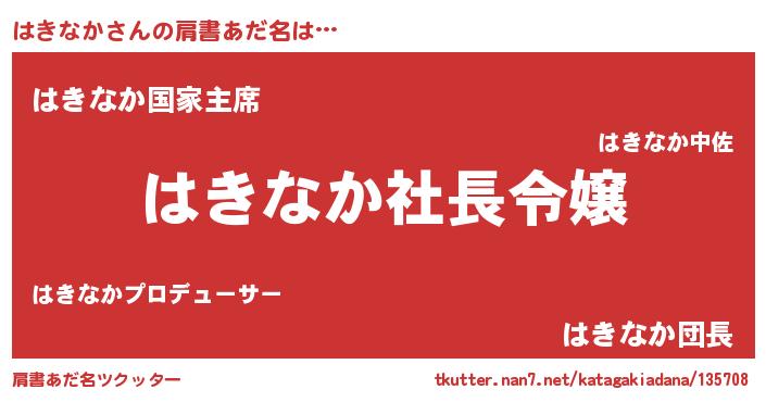 | 恥ずかしいあだ名 | 『プリティーはきなか』『はきっちょ』 |